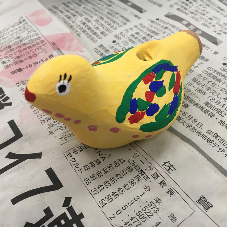 絵付け体験作品集世界に1つだけの作品です!武雄の伝統弓野人形絵付け体験、平和のハト笛絵付け体験の作品集です。お子様から大人までみんなが熱中できるお手軽体験!その日にお持ち帰りできるのもポイントです^^そして一人ひとりの感性で様々な作品ができるのも特徴ですよ。大人数でも少人数でも楽しめる平和のハト笛絵付け体験はいかがですか?